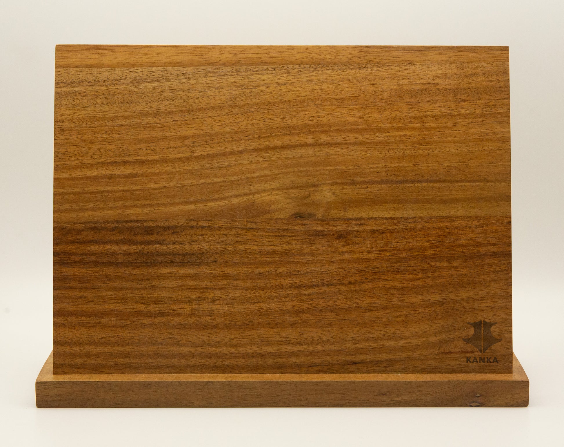 MAGNETIC KNIFE HOLDER, 100% Acacia Wood. Magnetic core to hold any knife or scissors, with non-slip rubber feet. A practical and elegant presentation for your KANKA knives. A perfect design for your kitchen countertop.